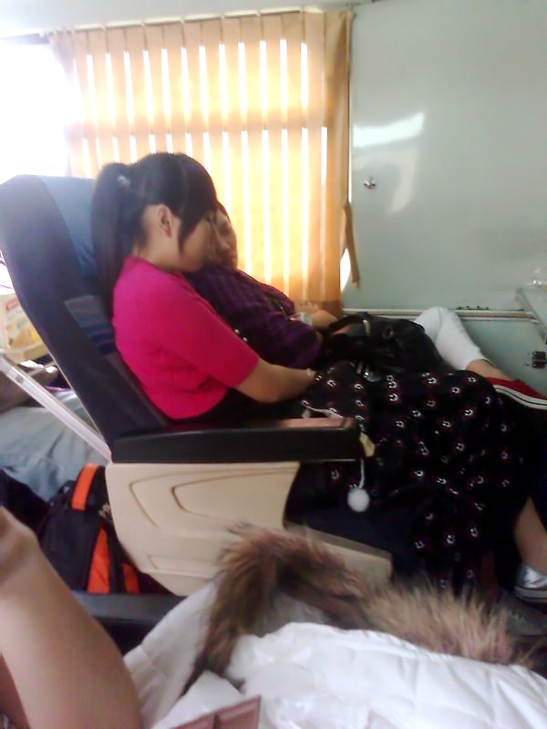她们在火车上睡了一下~